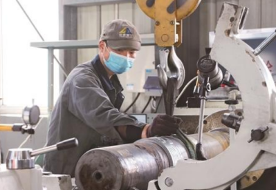 沖撞機(jī)軸心吊裝工序看似簡單,實則驚險,整個吊裝過程若是差一分一厘或者出現(xiàn)猛烈撞擊障礙物的情況,就有可能導(dǎo)致軸心被報廢處理,為了避免超載和碰撞,該名工人使用的是荷載能力為5噸的鋼絲繩電動葫蘆,且全程手扶軸心部件,另外安排一名工人操控電動葫蘆遙控器。