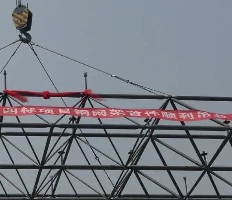 銀川文化園位于銀川市中心城區(qū)南北方向的主軸之上,園區(qū)內(nèi)建有圖書館、藝術(shù)博覽中心、體育館以及融媒大廈等,在建造大廈過程中需要架設(shè)一個重達(dá)100噸的大網(wǎng)架,這個網(wǎng)架是由工人事先在地面上使用幾千根桿件焊接而成的,焊接完成后需要利用吊裝工具將其整體吊裝到大廈頂部。