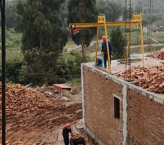 施工人員可以在屋頂上放置一個(gè)建筑用四立柱小型龍門吊,安裝上微型電動(dòng)葫蘆,適合多種窗口吊運(yùn)作業(yè),同時(shí)也可以在室內(nèi)放置一個(gè)直滑式軌道,軌道上懸掛微型電動(dòng)葫蘆,就可以直進(jìn)直出,適合室內(nèi)與室外之間的物料相互轉(zhuǎn)運(yùn)操作。