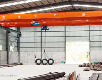 從起重機(jī)的設(shè)計(jì)原理分析,電動(dòng)單梁起重機(jī)主梁是一個(gè)細(xì)長(zhǎng)的簡(jiǎn)支梁,梁、鋼絲繩電動(dòng)葫蘆的自重及載荷都使主梁產(chǎn)生向下彈性變形,當(dāng)電動(dòng)葫蘆滿載作用在跨中時(shí),主梁產(chǎn)生向下彈性變形最大。
