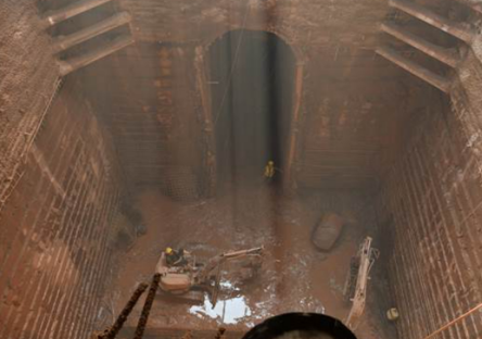進行到后期,隨著豎井深度的不斷加深,材料的轉運難度變大,下井施工人員作業(yè)時的安全風險和安全管控也變得更大。施工人員稱,鋼筋只能通過大型機械轉運至豎井通道門口,靠人力一根一根抬進豎井邊,再利用鋼絲繩電動葫蘆下放到施工作業(yè)面使用。