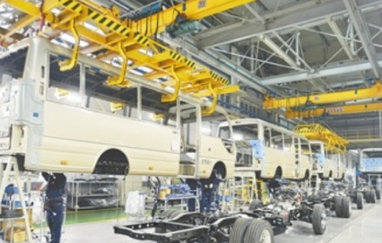 但是客車的車身和底盤重量大、體型大,對安裝精度要求非常高,工人們便使用車間上方安裝的單梁起重機來起吊車身和底盤,單梁起重機是由單梁和鋼絲繩電動葫蘆組合而成,承載能力強,操作方便,工人們在地面上就能遠程操控起電動葫蘆,完成車身和底盤的吊上、吊下以及精準調(diào)整工作,整個過程既輕松又省力,確??蛙囐|(zhì)量。