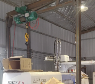 于是廠房的管理人員便使用一臺移動式的小型龍門吊架,在吊架的軌道上安裝鋼絲繩電動葫蘆,利用電動葫蘆的吊鉤和吊裝帶同時吊裝環(huán)保設備到指定位置,解決了設備搬運的難題,也為后期維修和拆卸環(huán)保設備提供了可靠的方法依據(jù)。