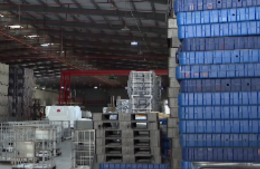 某容器生產(chǎn)工廠主要生產(chǎn)塑料噸桶、防爆噸桶、船級社噸桶等容器,這些容器噸桶數(shù)量龐大,主要供貨對象為當(dāng)?shù)氐氖瘓@區(qū)的化工廠,在容器廠車間內(nèi)部,除了有各種生產(chǎn)物資和設(shè)備外,還有很多需要等待轉(zhuǎn)運的容器噸桶,車間內(nèi)特意準(zhǔn)備了一臺移動式龍門吊,懸掛上鋼絲繩電動葫蘆,協(xié)助工人快速轉(zhuǎn)運噸桶容器。
